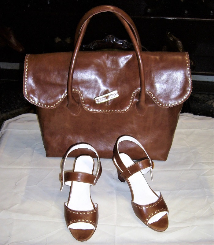 a mano in pelle di vitellino, di color marrone.